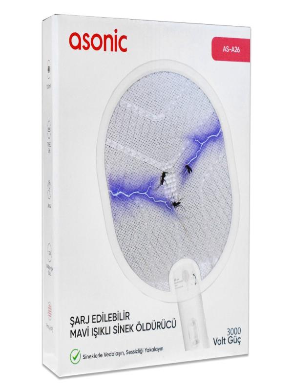 Asoni̇c Şarjli Uv Işikli Katlanabi̇li̇r Si̇nek Raketi̇ 3000V As-A26