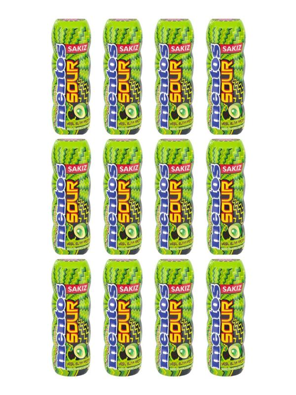 Mentos Sour Yeşil Elma Aromalı Şekersiz Tatlandırıcılı Ekşi Draje Sakız 30 G X 12 Adet