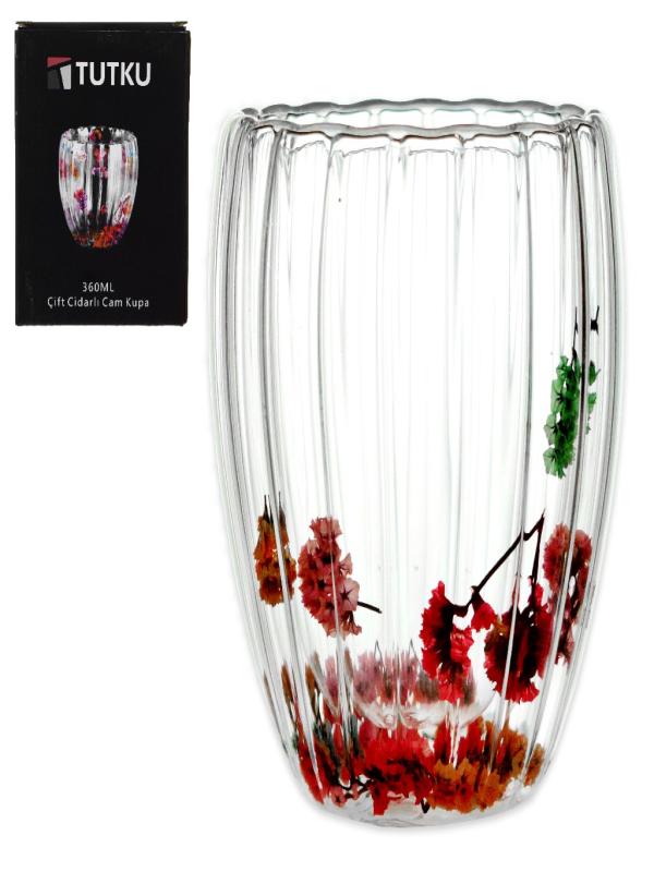 TUTKU ÇİFT CİDARLI CAM SU BARDAK 360 ML KT-008